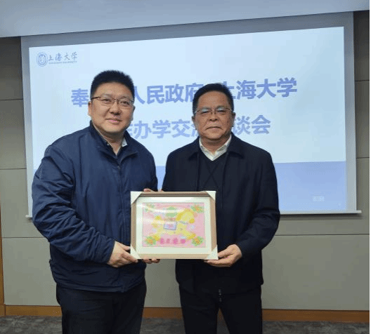 会上,上大附校·齐贤联合学校党总支副书记、校长沈琳莹与上大附幼·金铃子联合幼儿园党总支副书记、园长黄萍分别汇报了合作办学以来在教育教学、师资建设、特色课程等方面取得的阶段性成果。 奉贤区教育工作党委副书记、教育局局长程立春在发言中指出,双方合作办学成效显著,在奉贤的两所上海大学附属学校和幼儿园展现了“质量高、口碑好、特色明”的显著特点,区教育局将继续做好资源统筹与政策支持,推动合作办学走深走实。 在互动交流环节,双方就师资培养、课程共建、资源共享等话题进行了深入探讨。会后,王从春副校长与王淳副区长互赠礼品,上海大学以《百年上大》书籍相赠,奉贤区则送上由上大附幼·金铃子联合幼儿园师生共同创作的马年手撕画,寓意双方合作根脉相连、携手共进。